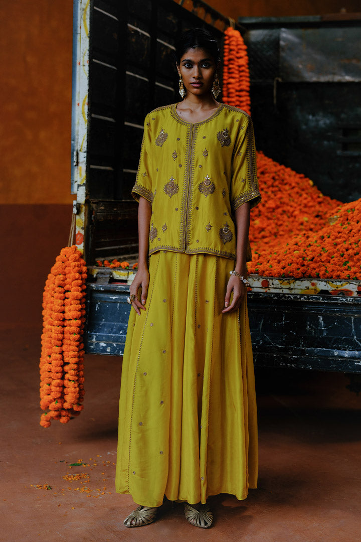 DAHLIA KURTA SHARARA DUPATTA SET - MINT GREEN