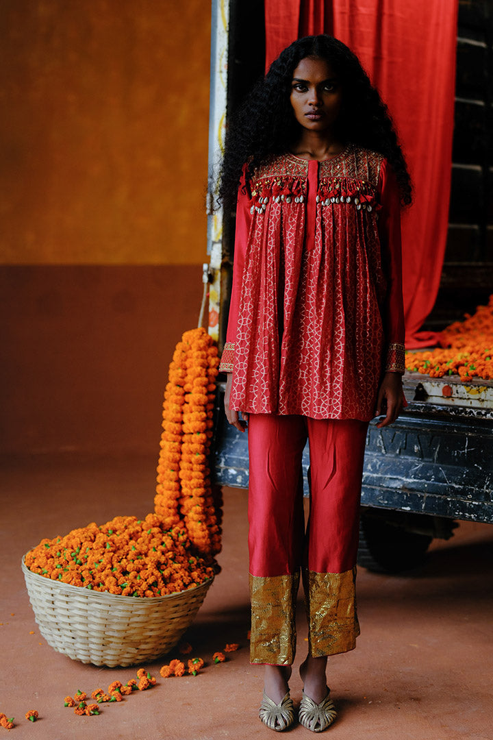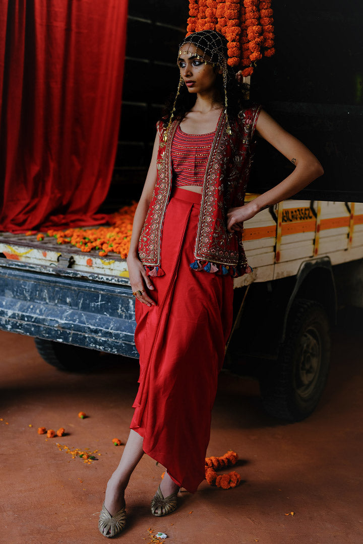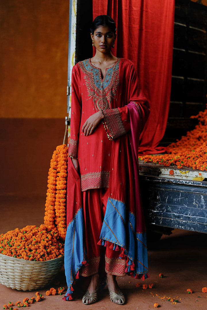 SEMAL KURTA SHARARA DUPATTA SET - RED