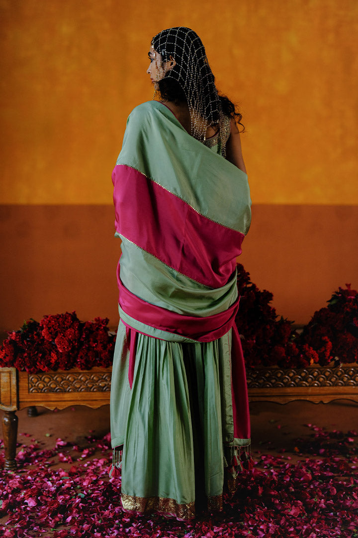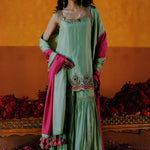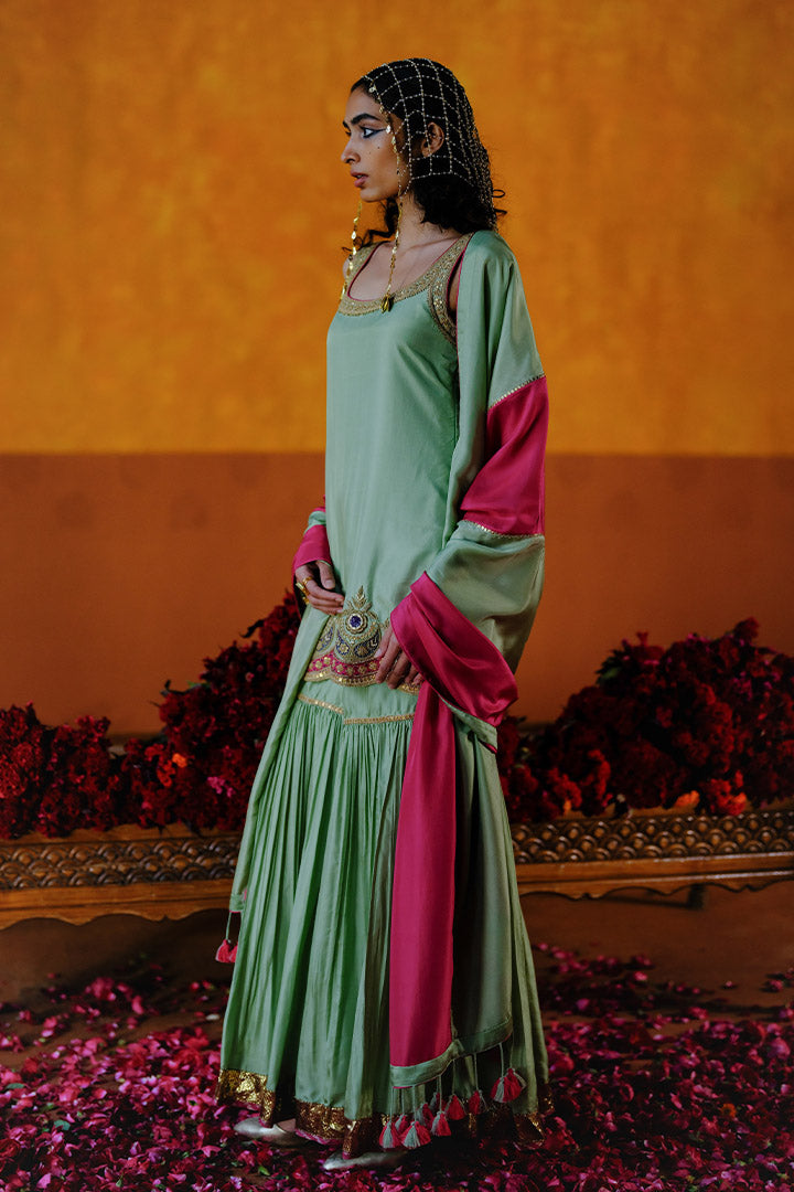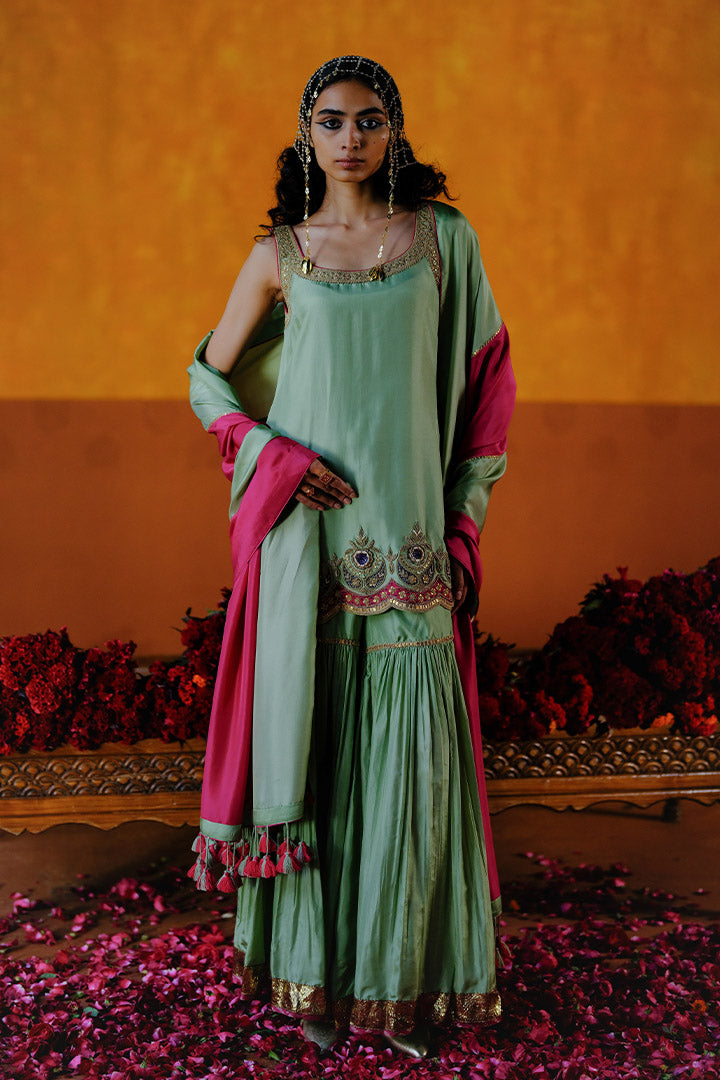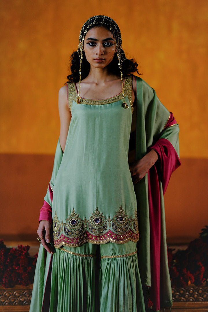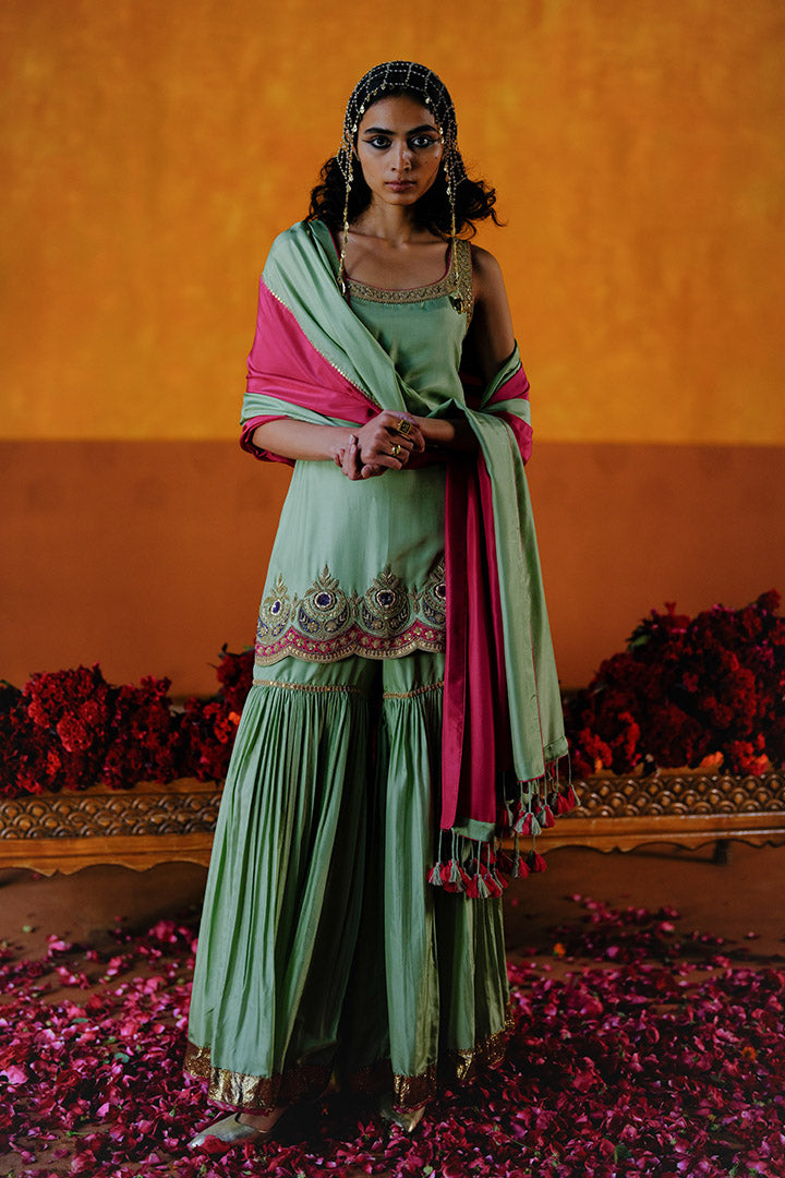 DAHLIA KURTA SHARARA DUPATTA SET - MINT GREEN