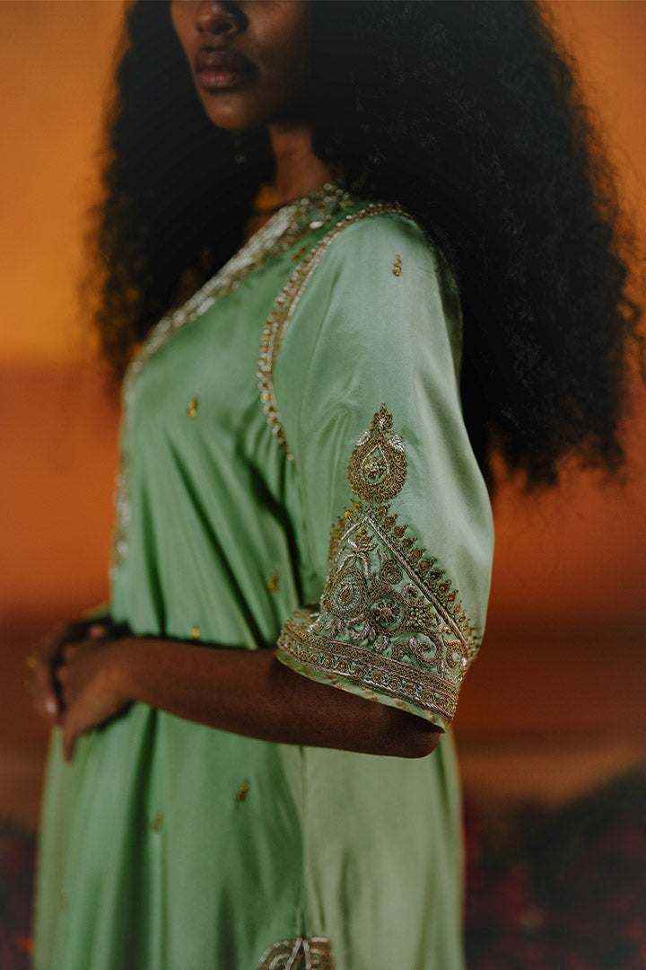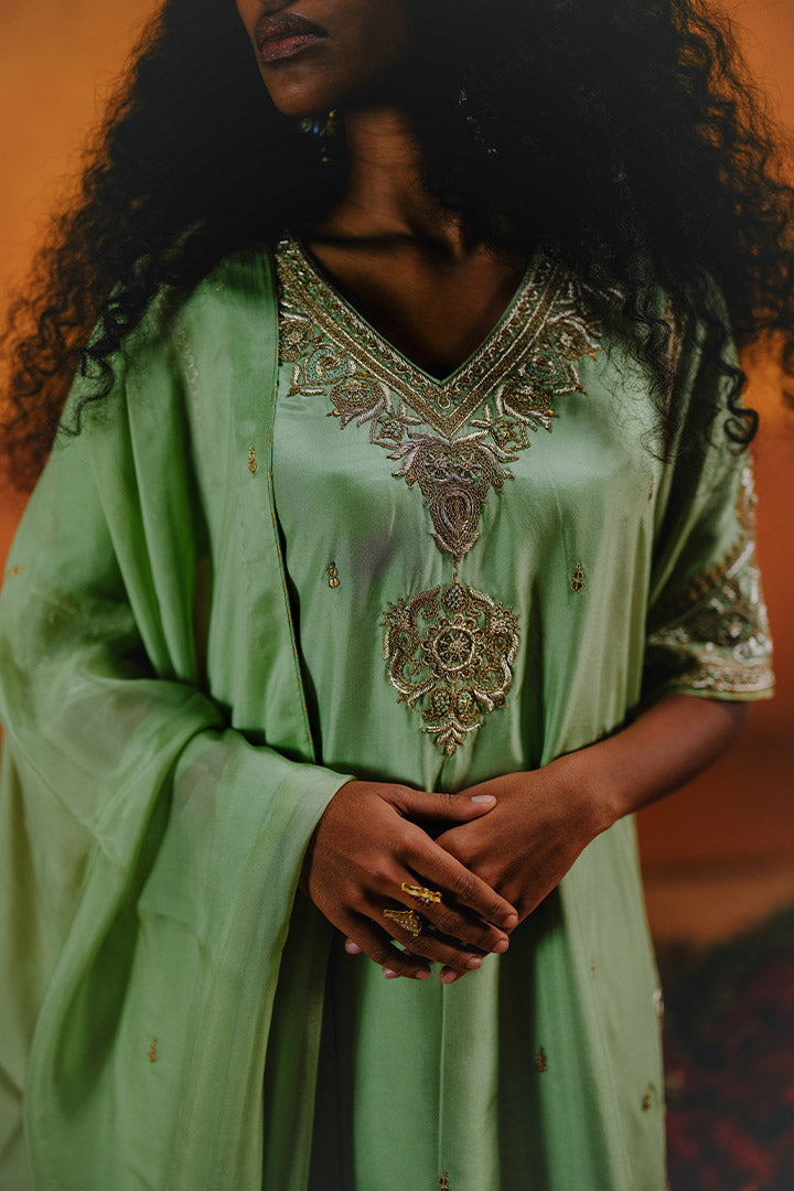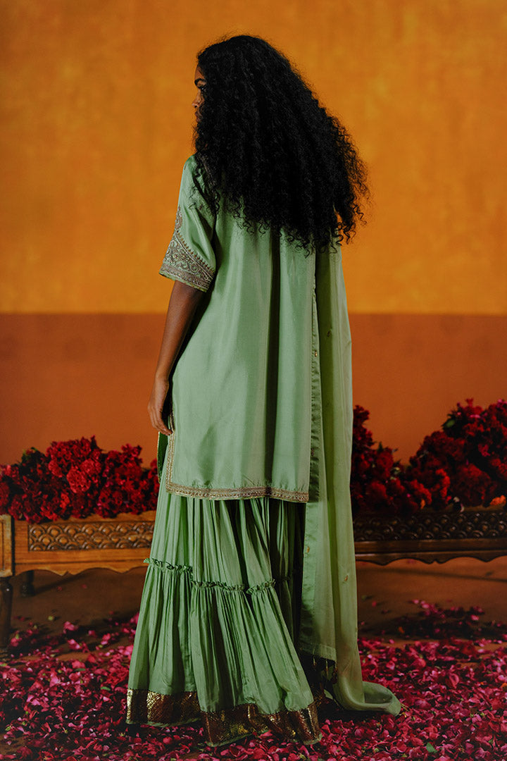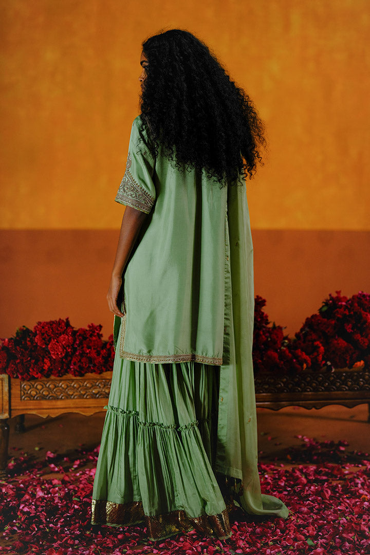 SEMAL KURTA SHARARA DUPATTA SET - MINT GREEN