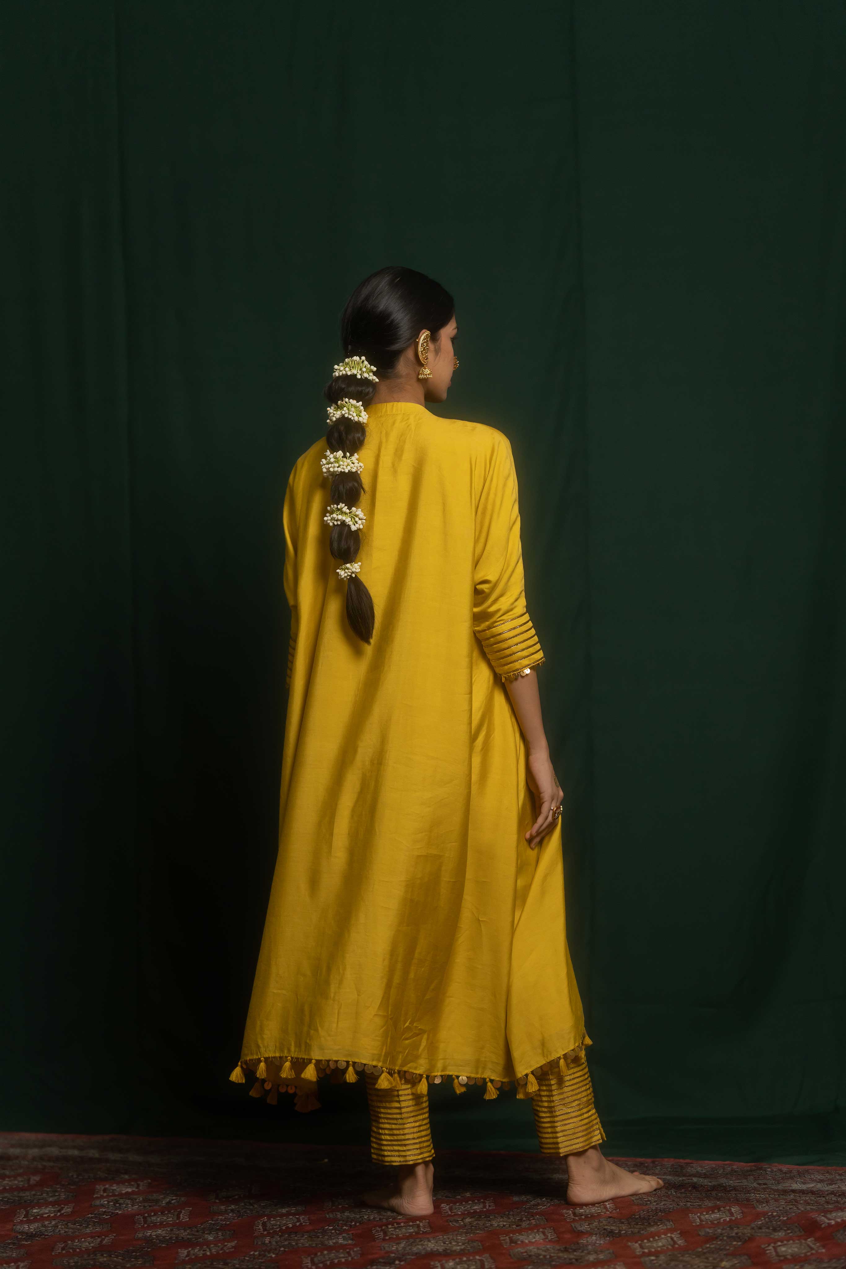 The pant is highlighted with gota patti lace.